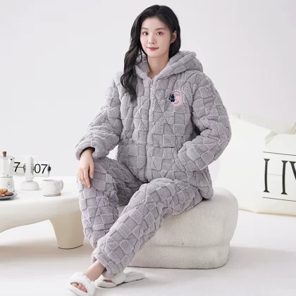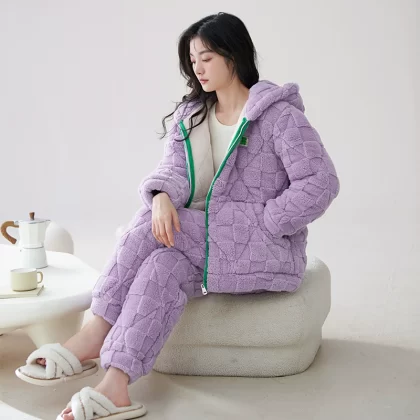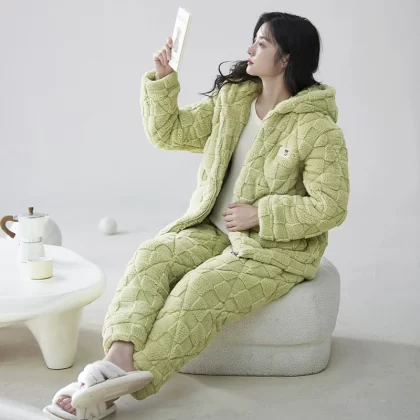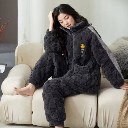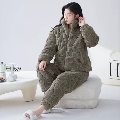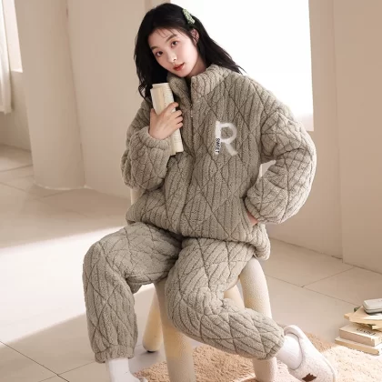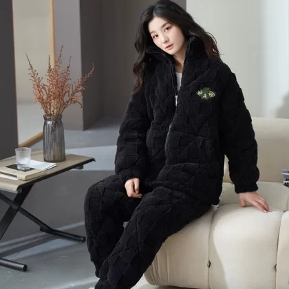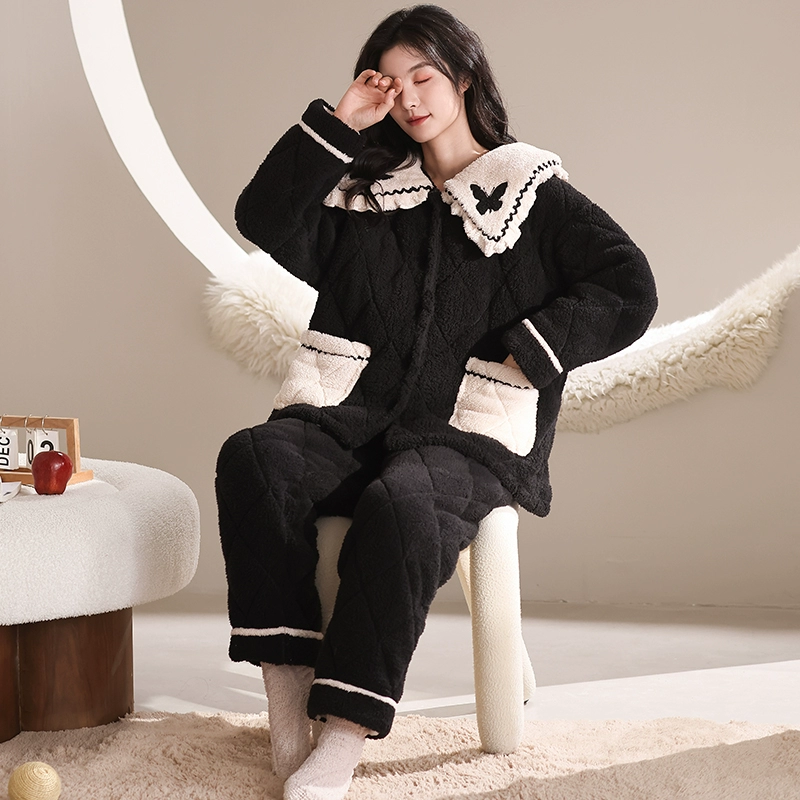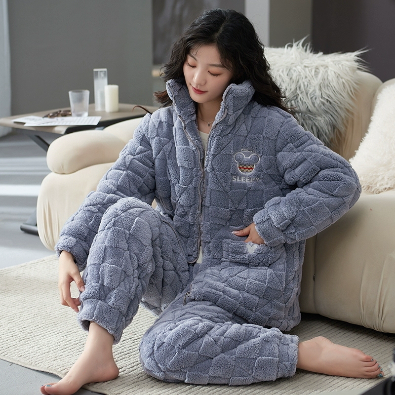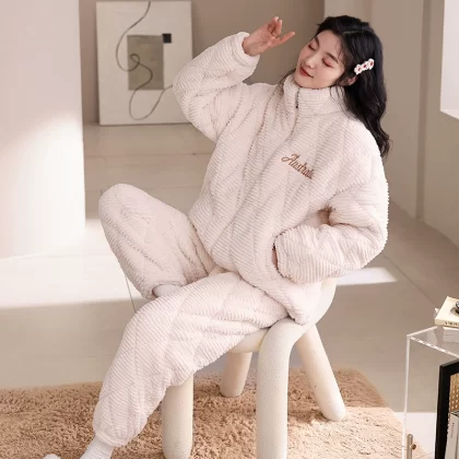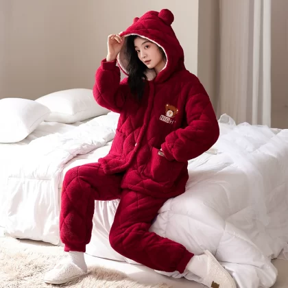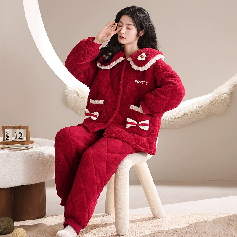 | nameOriginal | Coral velvet three-layer quilted pajamas for women winter thickened plus velvet warm doll collar festive red home wear set |
