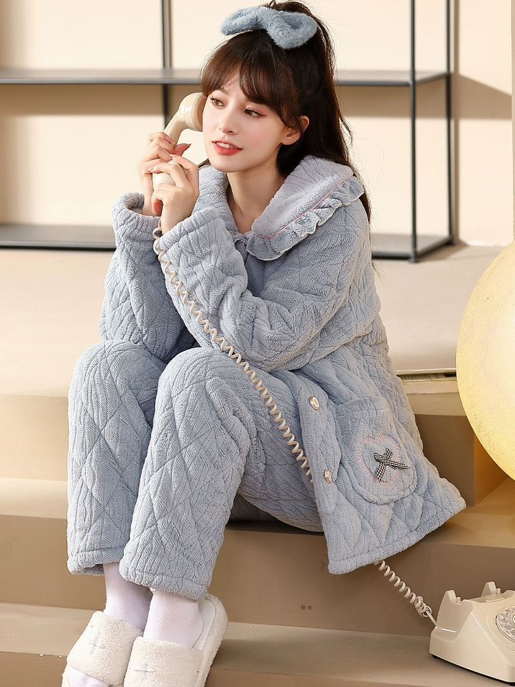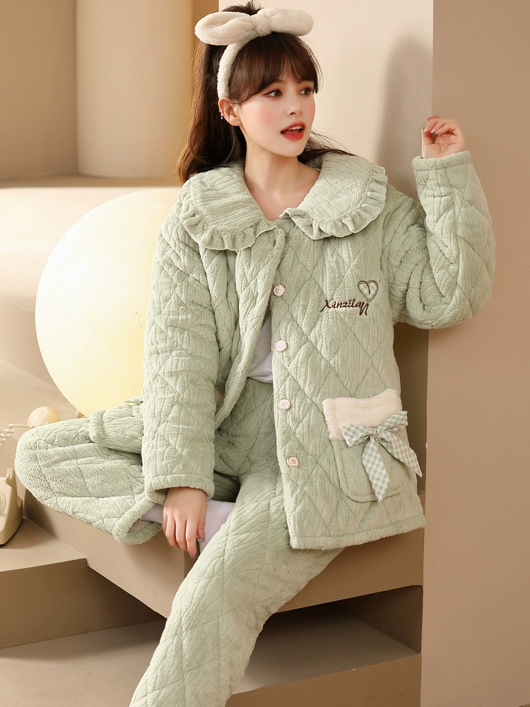 | nameOriginal | Coral velvet three-layer quilted thickened velvet pajamas for women 2024 winter new flannel home wear set |