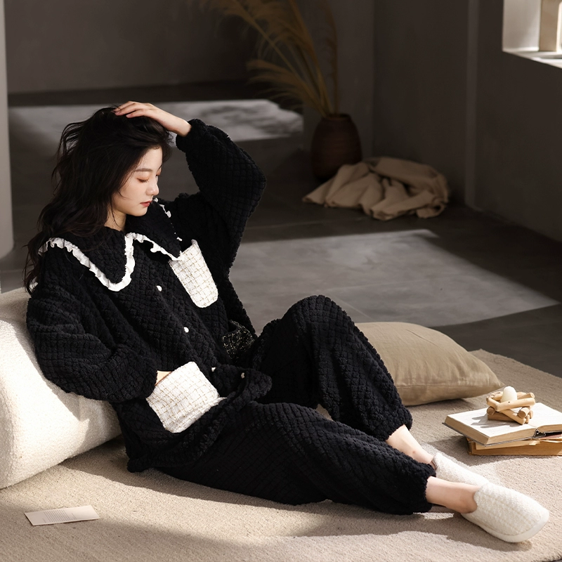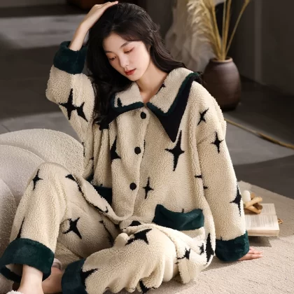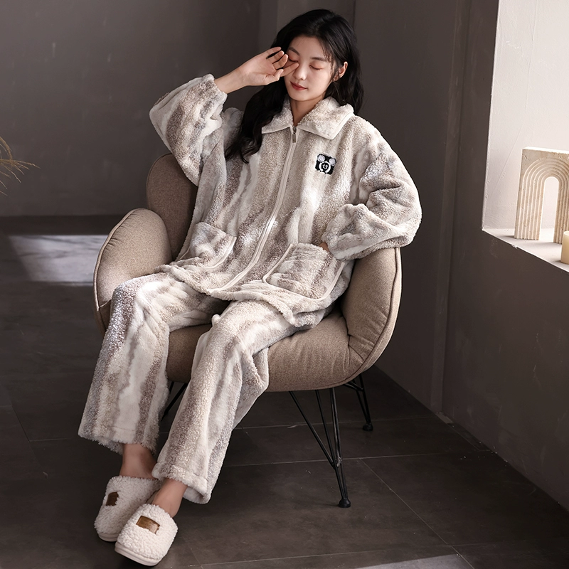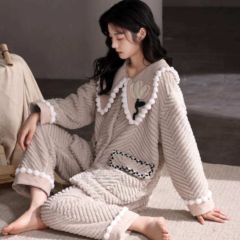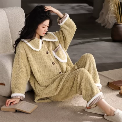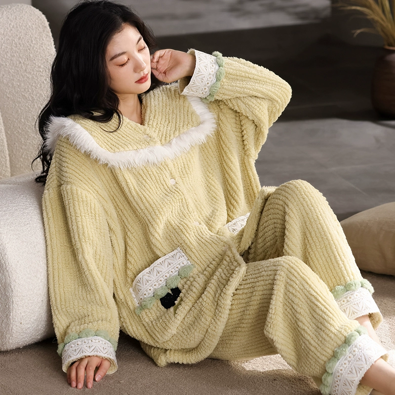 | nameOriginal | Coral velvet winter pajamas for women, plus velvet, thickening and warmth 2023 new style small fragrance warm yellow home clothes two-piece set |