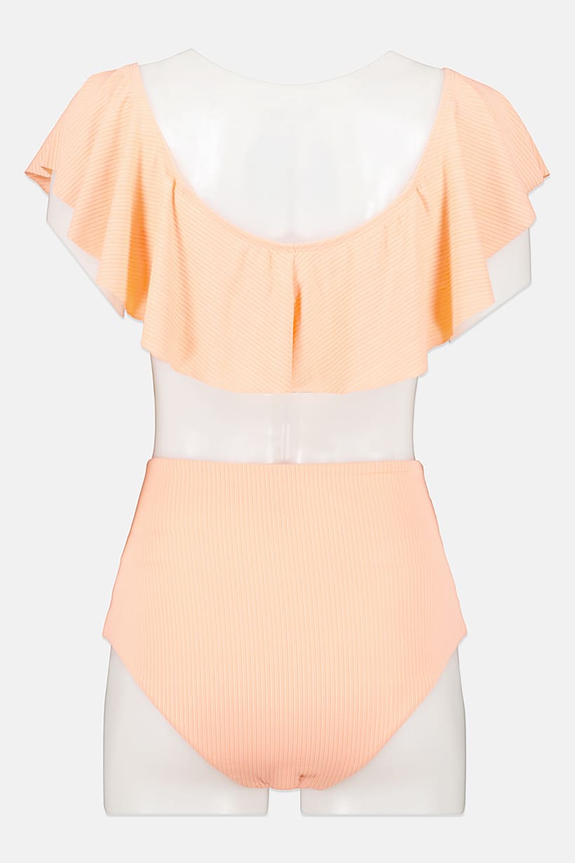 Care : Hand wash, Ideal For : Women, Padding : Yes, Size shown : International, Type of Swimwear : Bikinis, Types of Neckline & Collar : Off-shoulder neckline, Types of Sleeve : Flared sleeve, Underwire : No, Bottom Closure : Pull on, Disclaimer : No returns accepted on lingerie, socks, undergarments and swimwear due to hygiene reasons., Fabrics : 90% Nylon, 10% Spandex, Pattern & Print : Textured pattern, Types of Closures : Pullover, Color Family : Orange,