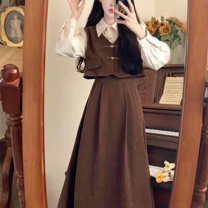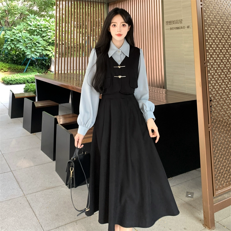 Corduroy long skirt retro early spring fat mm fake two pieces