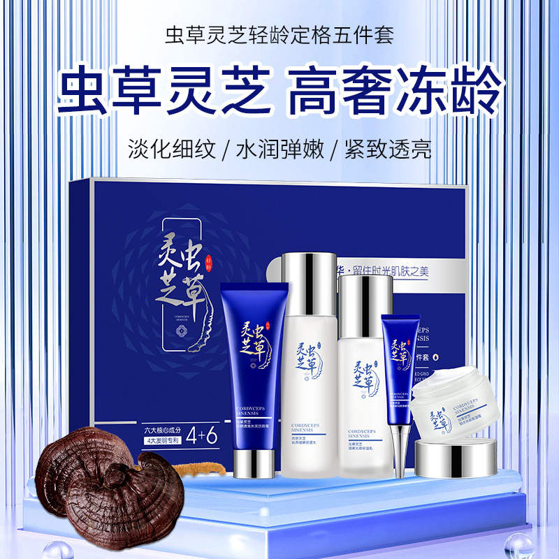 Cordyceps Ganoderma lucidum anti-wrinkle firming set Hydrating Light grain cinema line set skin care gift box manufacturers wholesale