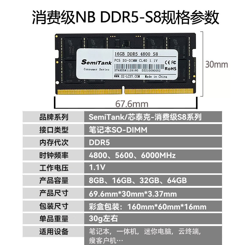 Core Tek 4800 memory DDR5 16gb NB computer memory d5 notebook GB 5600 5 generation 8gb
