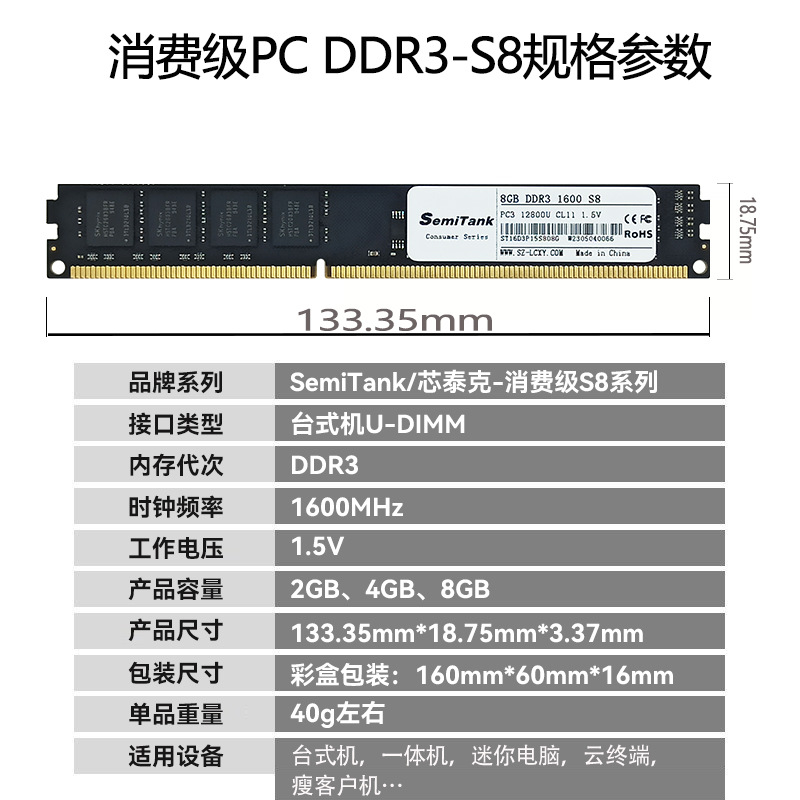 Core Tek desktop memory strip DDR3 2G computer memory 8G three-generation PC 1600 frequency D3 memory strip 4G