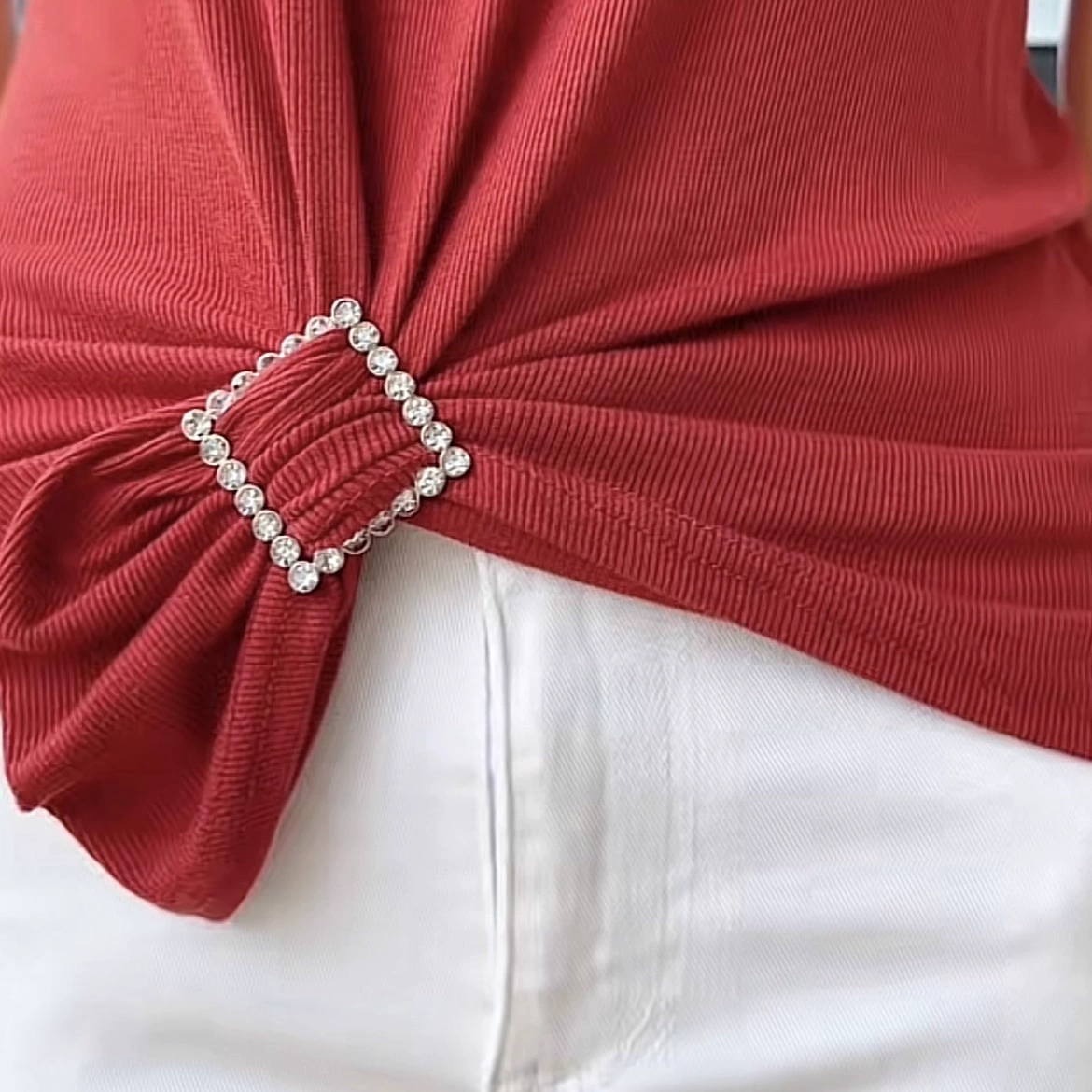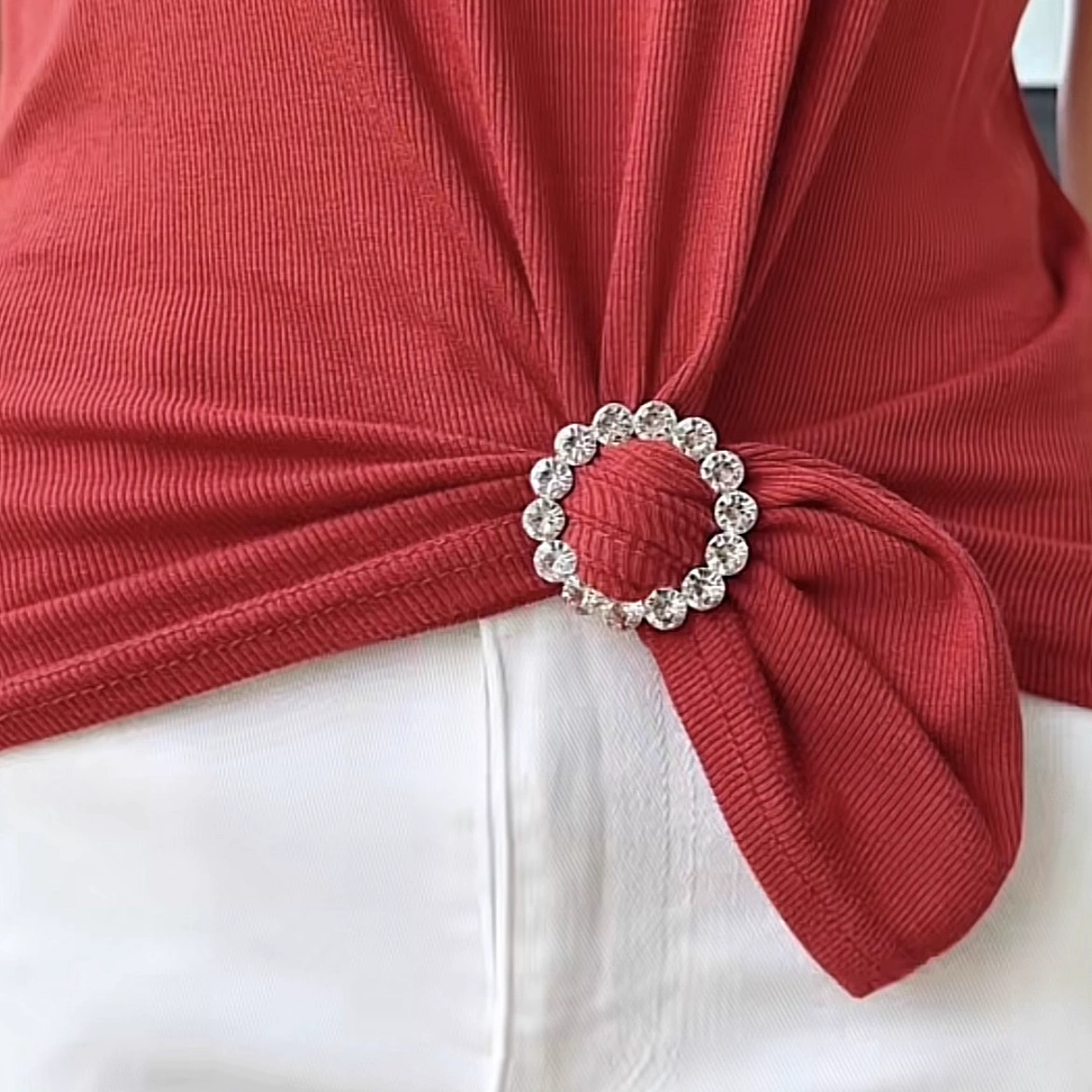 Corner buckle top, female tie clothes, fixing T -shirt knot artifact, round buckle, waist buttons