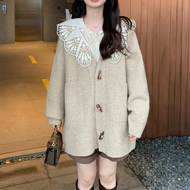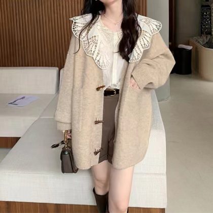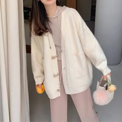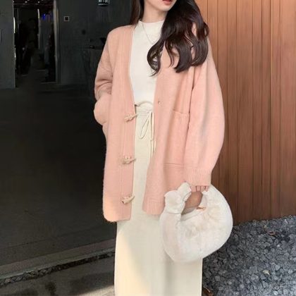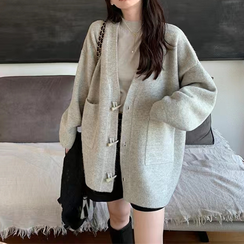 | nameOriginal | Corner Button Knitted Coat Women's V-Neck Loose Lazy Style Outer Wear Autumn and Winter All-match Western Style Simple Sweater Cardigan |