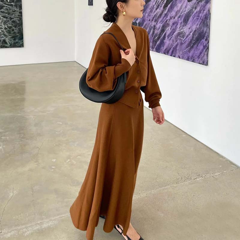 | nameOriginal | cos style early spring new wool blended skirt skin-friendly warm V-neck knitted cardigan temperament suit wholesale |