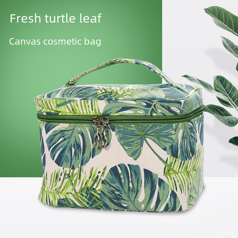 Cosmetic Bag large capacity cross-border ins canvas travel storage bag turtle leaf printing travel portable wash bag for women