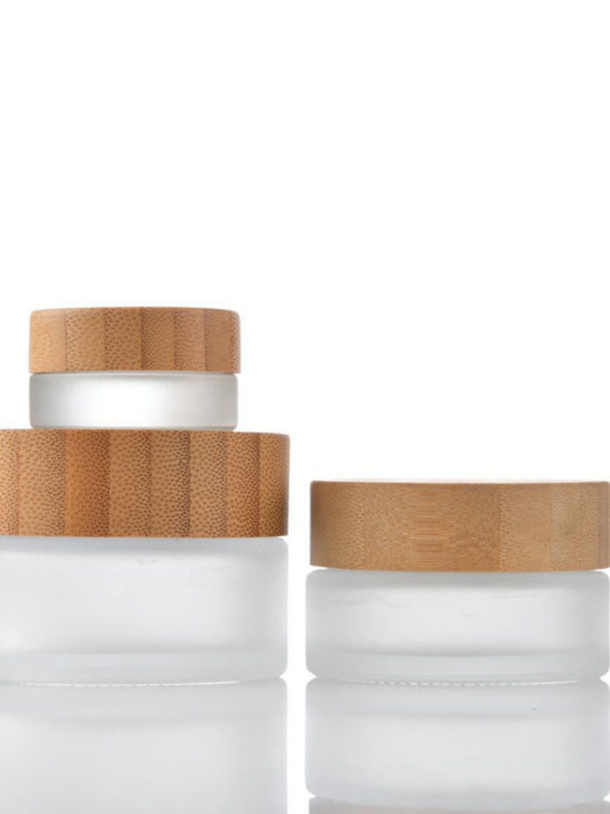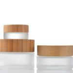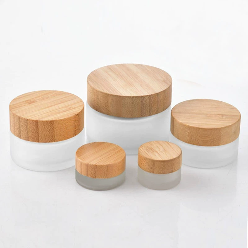 Cosmetic frosted glass cream bottle with bamboo wood cover