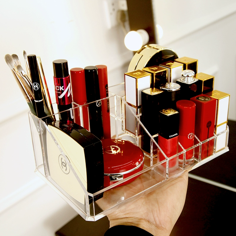 Cosmetic powder air cushion lipstick storage box multi-functional large skin care product eyebrow pencil brush plastic transparent storage rack