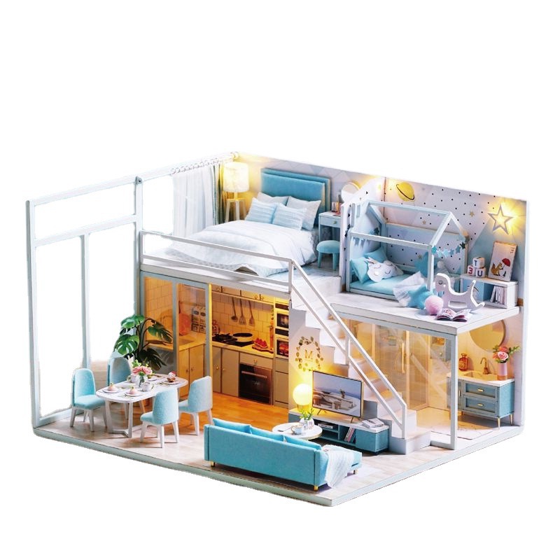 Cottage hand-assembled, comfortable time creative mini loft villa toy birthday gift for girls free shipping