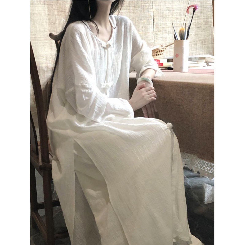 | nameOriginal | Cotton and Linen New Chinese Zen Style Women's Clothing Plain Elegant Cool Tea Clothing Zen Clothing Hanfu Buddha Style Long Shirt with Button for Women |