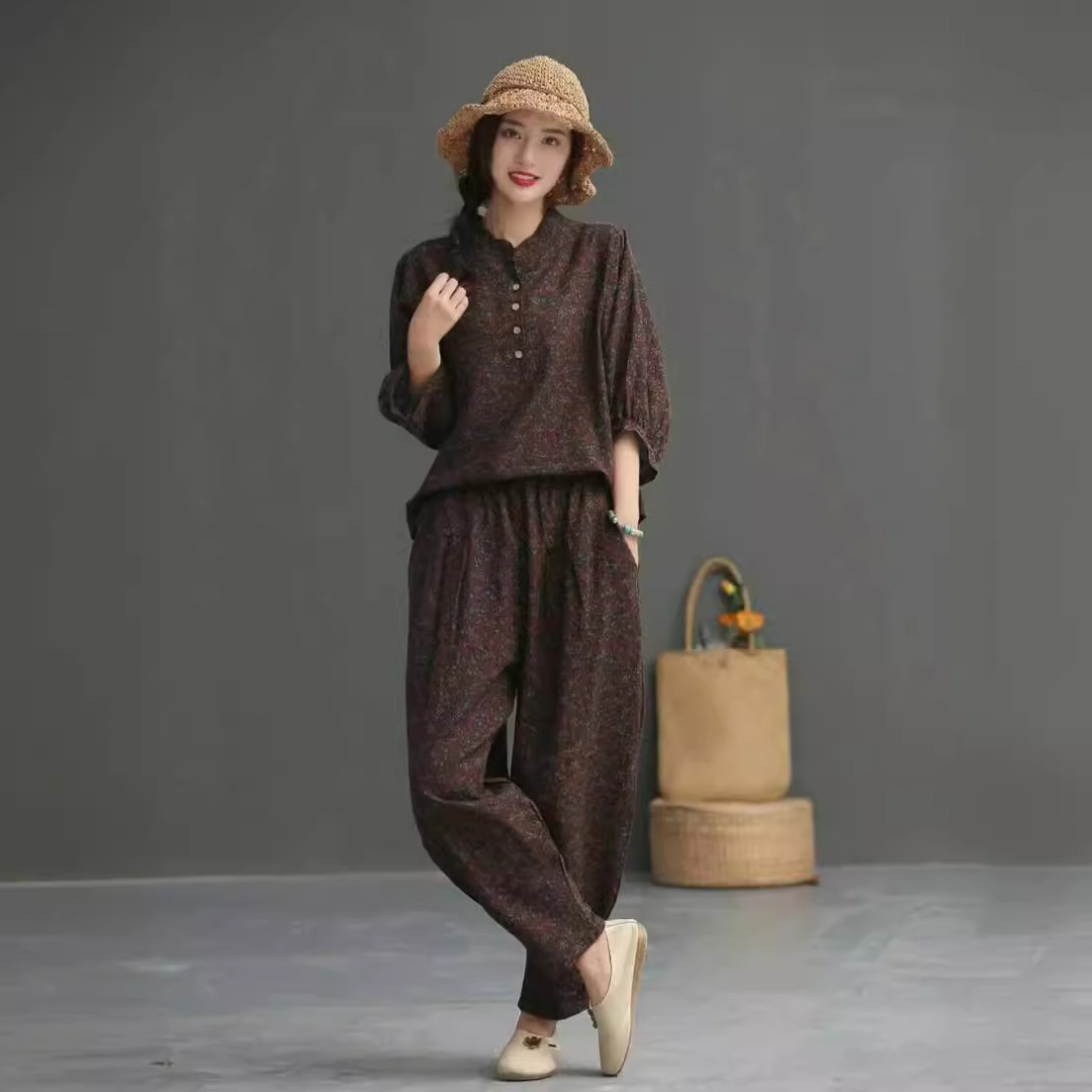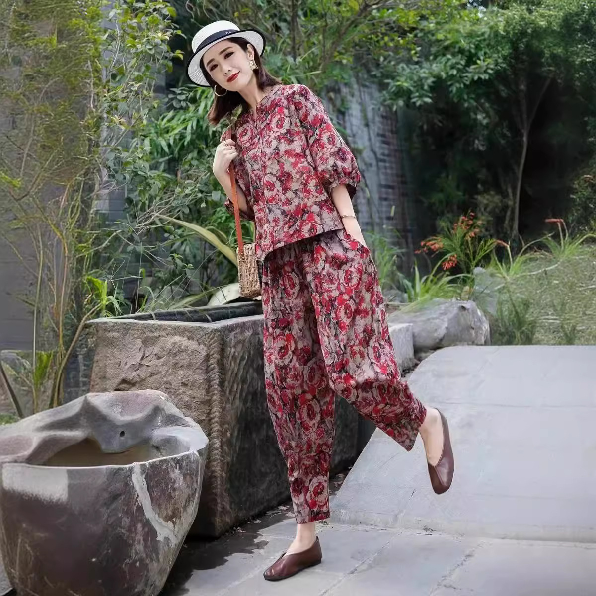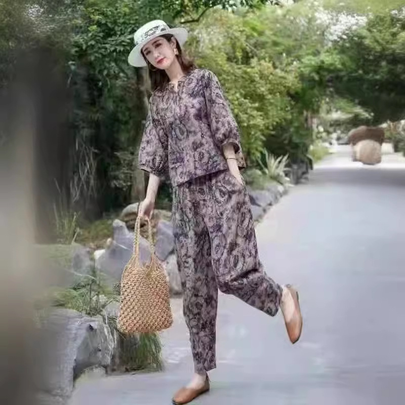 | nameOriginal | Cotton and Linen Pants suit Spring and Summer 2024 New Vintage Cotton and Linen plus size Women's Casual Two-piece Set Middle-aged and Elderly Women |