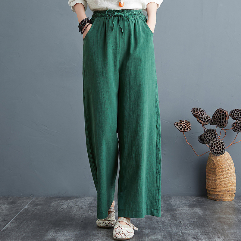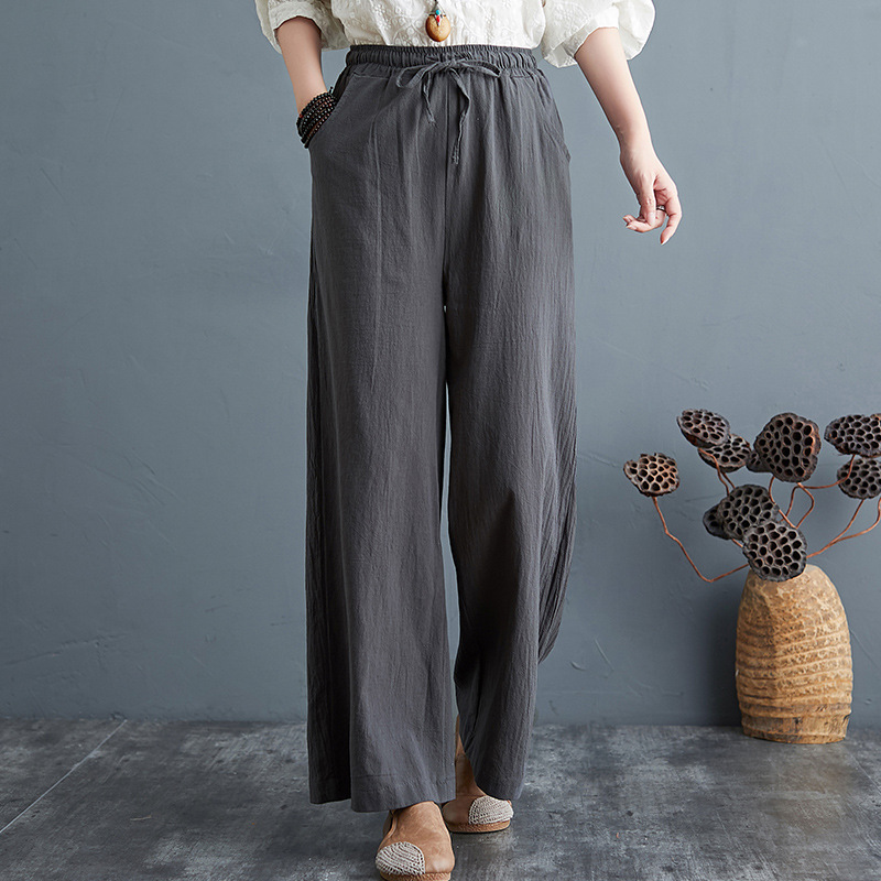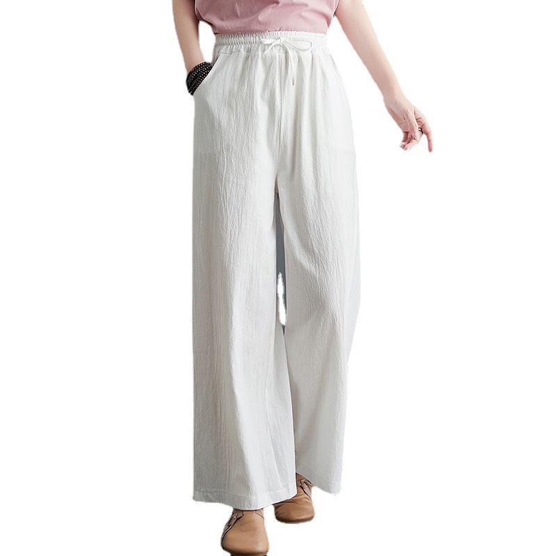 Cotton and Linen Pants Women's Spring and Autumn Casual Linen White Wide Leg Pants High Waist Draped Straight Leg Pants Summer Big Leg Pants