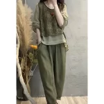 Cotton and linen printed stitching harem pants slimming fake two pieces