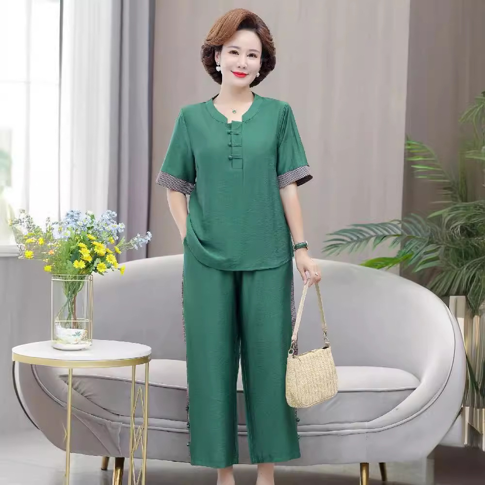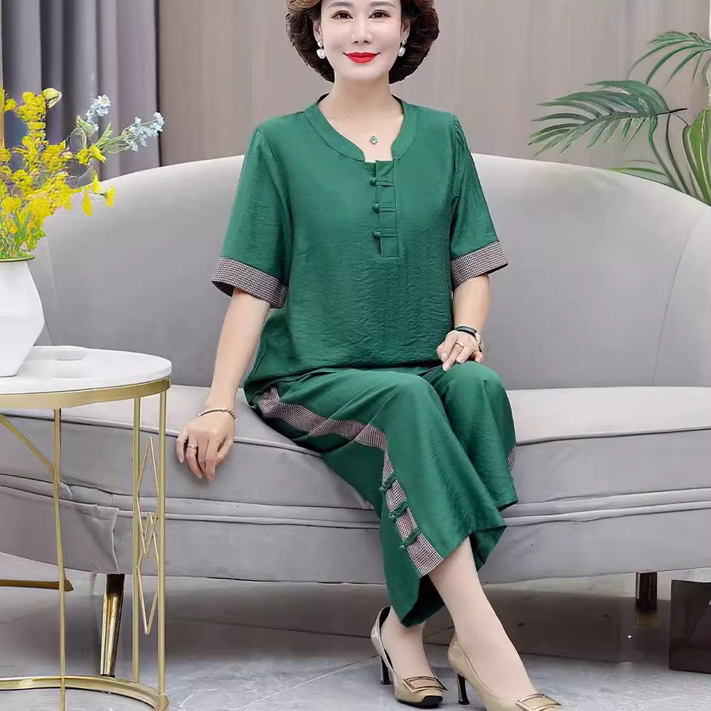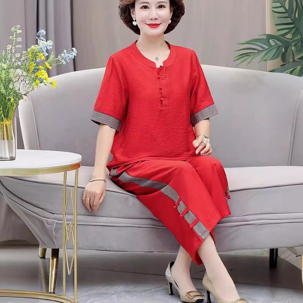 | nameOriginal | Cotton and Linen Short-sleeved T-shirt suit Women's Summer New Loose plus size Women's Clothing Middle-aged and Elderly Mother's Ankle-length Pants Two-piece Set |