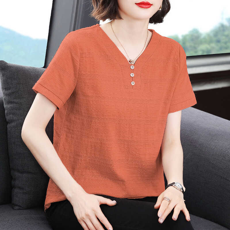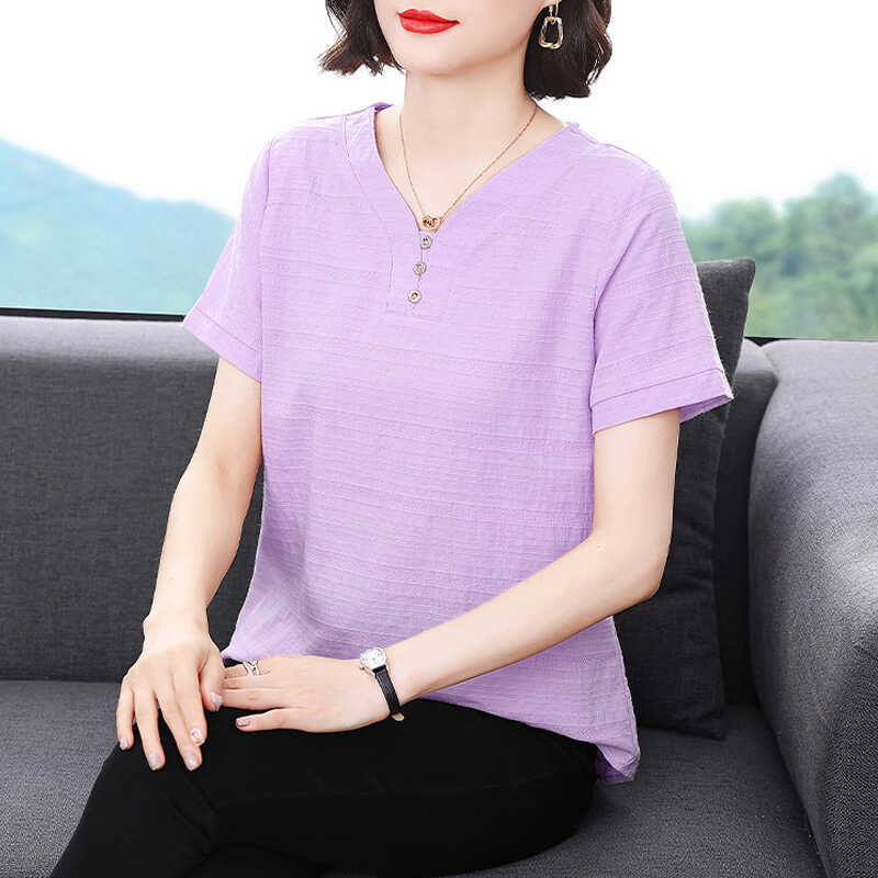 | nameOriginal | Cotton and Linen Short-sleeved T-shirt Women's Summer 2024 New Middle-aged and Elderly Loose Belly Covering Casual Commuting Age-reducing Top |