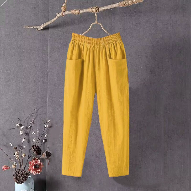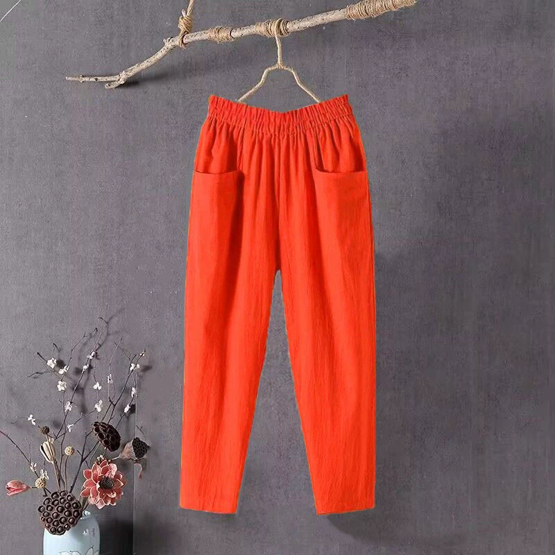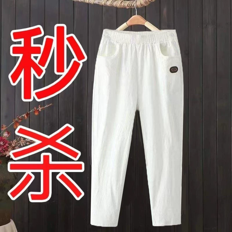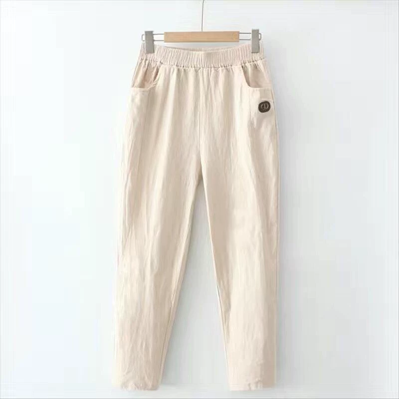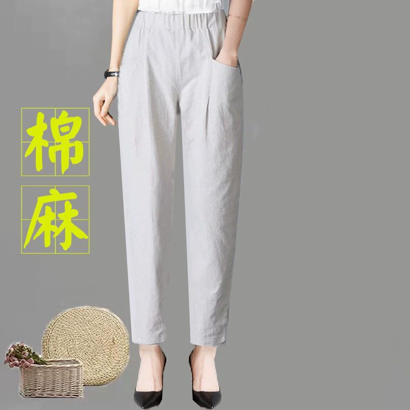 | nameOriginal | Cotton and linen thin popular style mom elastic waist casual ninth pants |