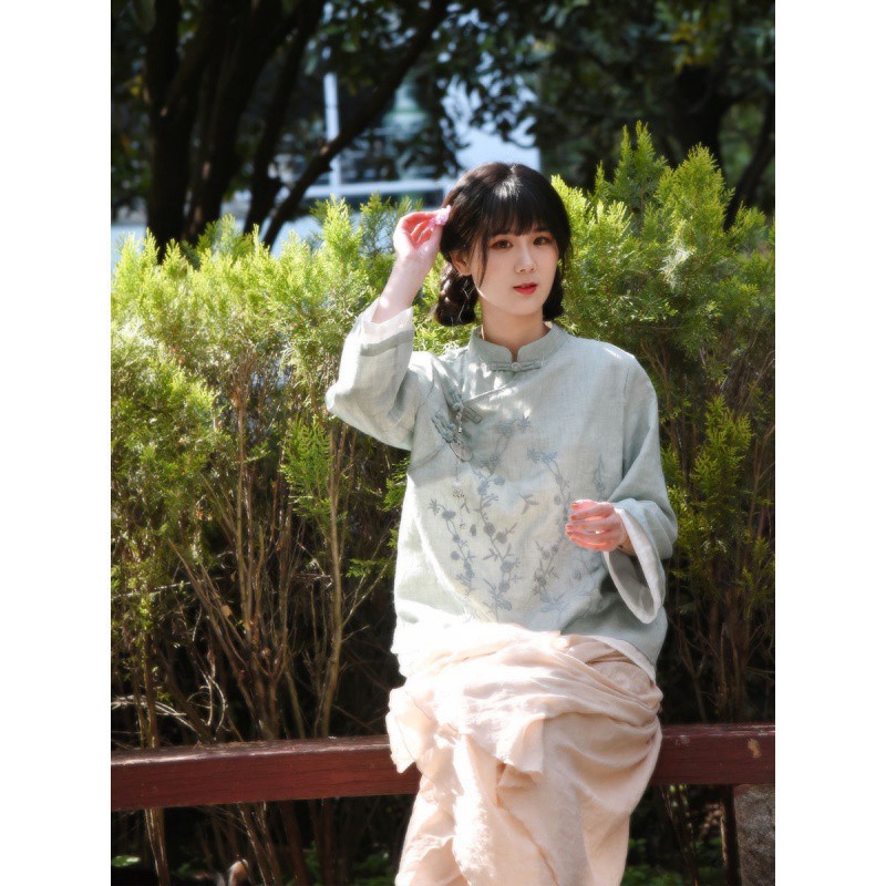nameOriginal | Cotton and Linen Top Fairy Style Zen Style Tea Suit Women's Artistic Retro Buddha Style suit Cheongsam Style Shirt with Chinese Style |