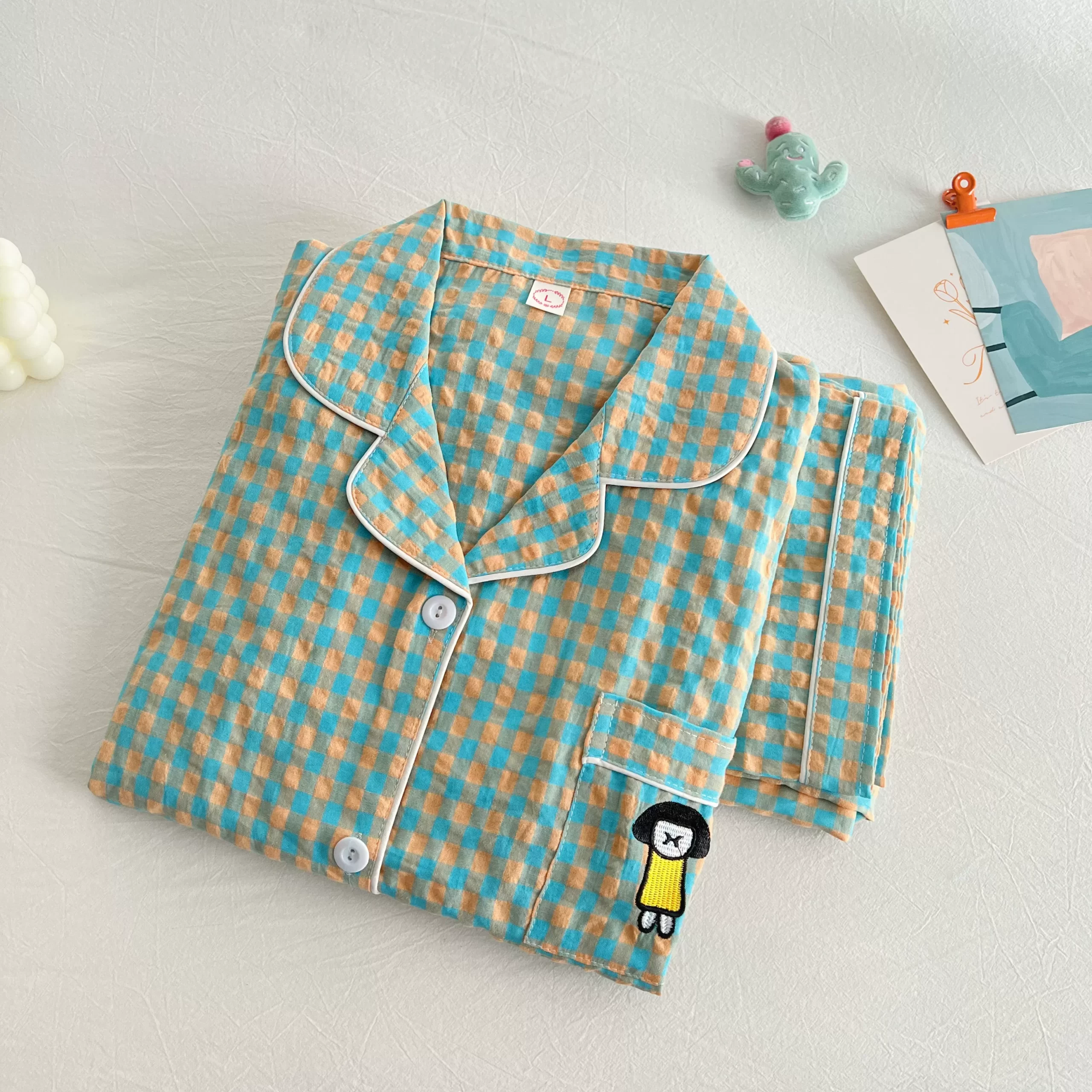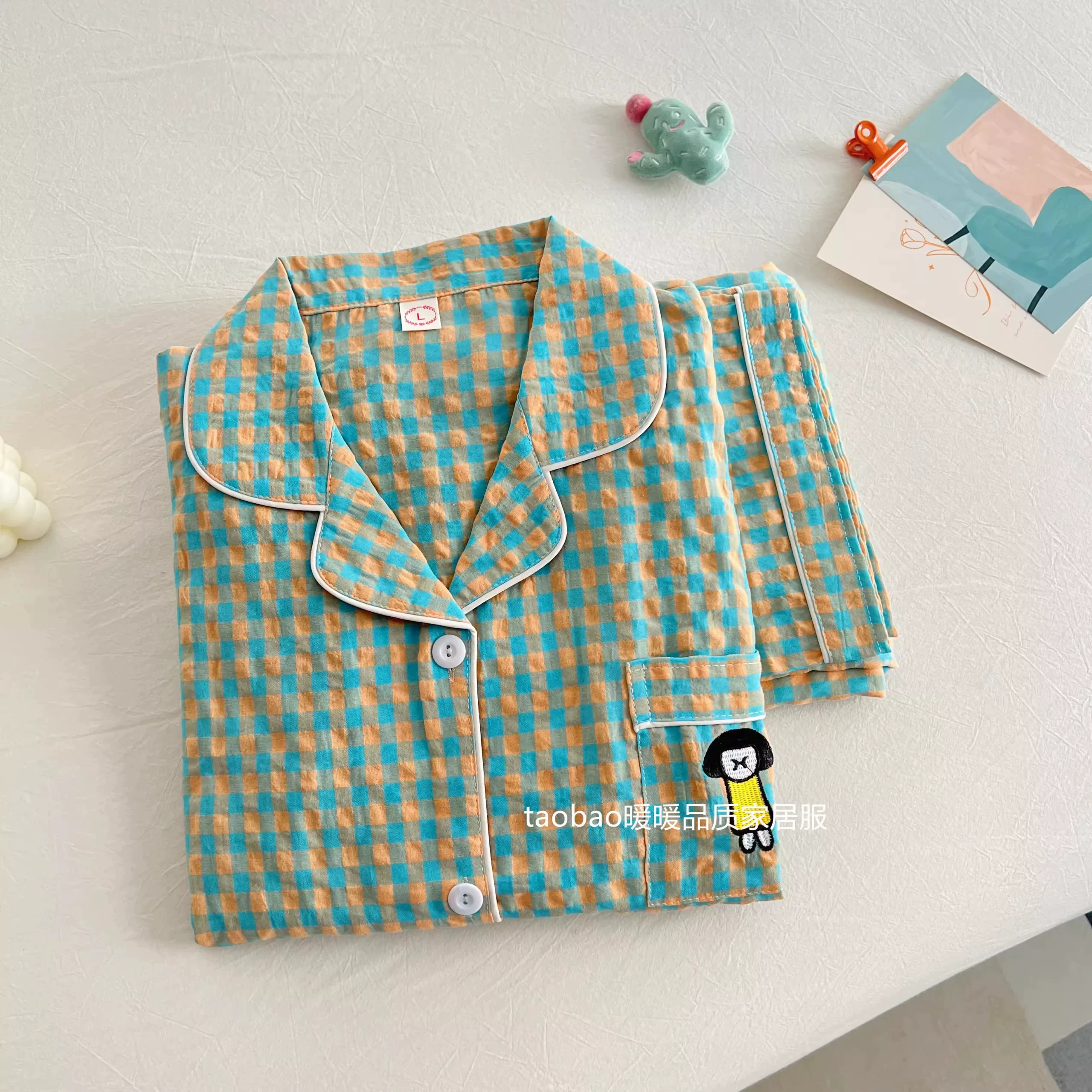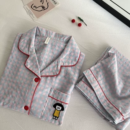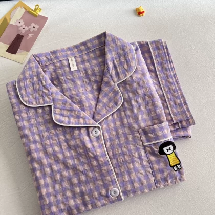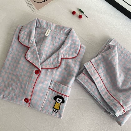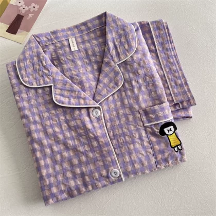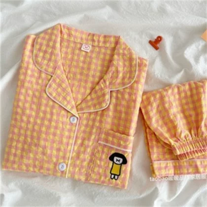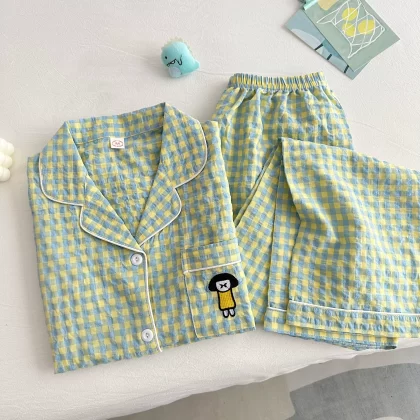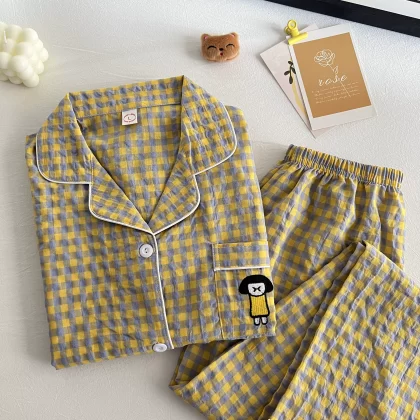 | nameOriginal | Cotton and linen women's 2023 summer Japanese plaid pajamas |
