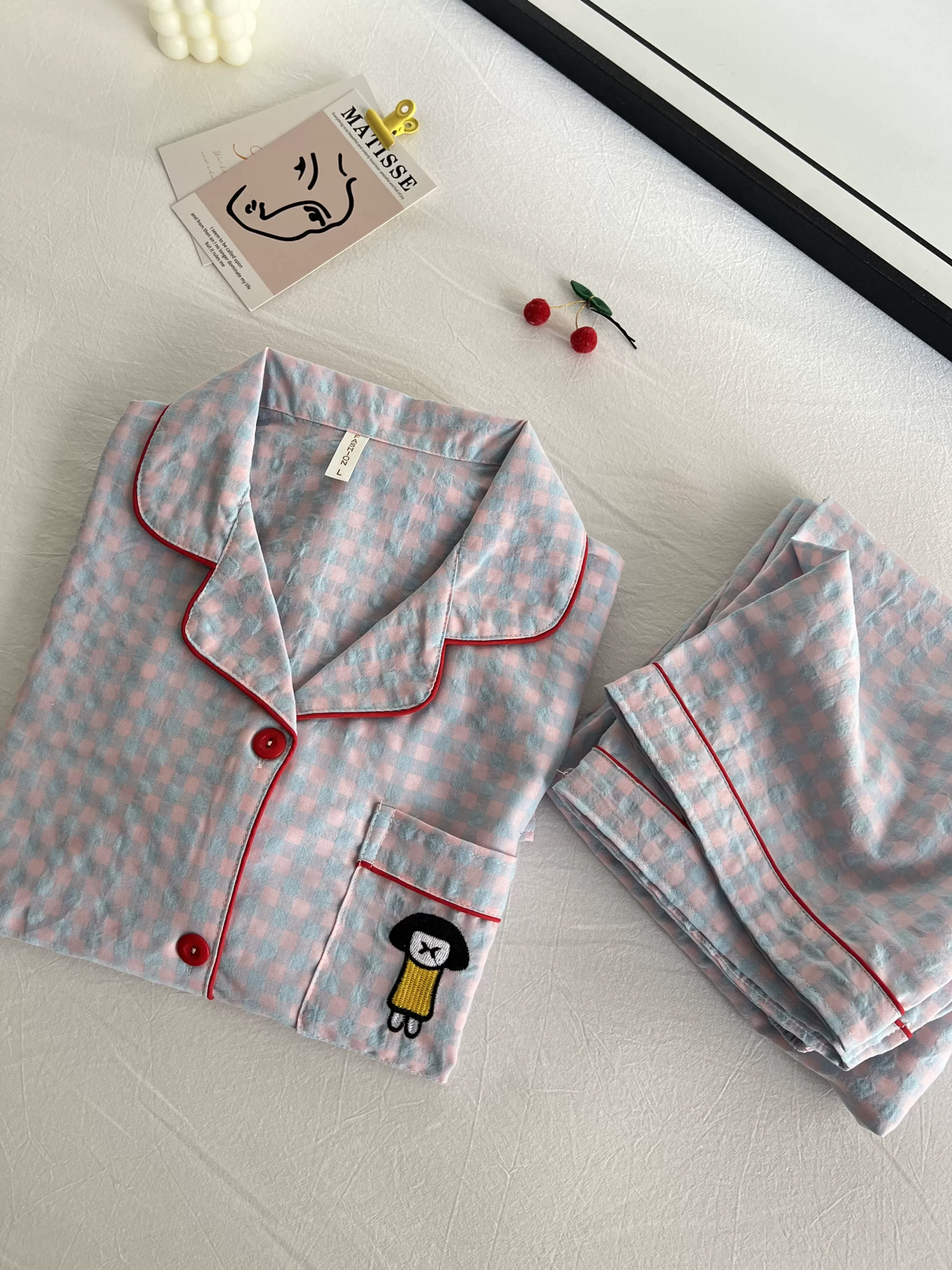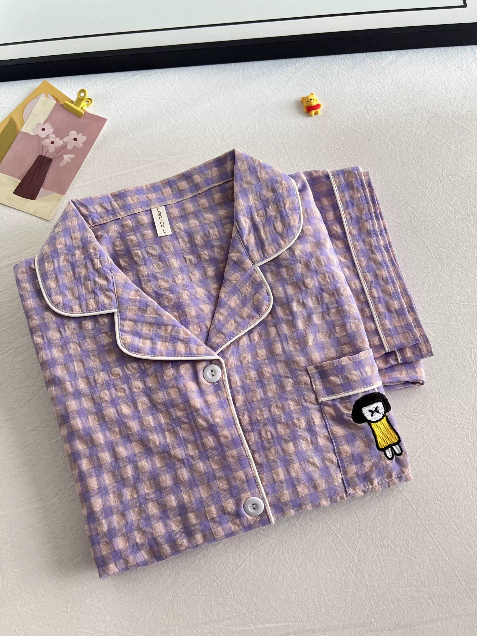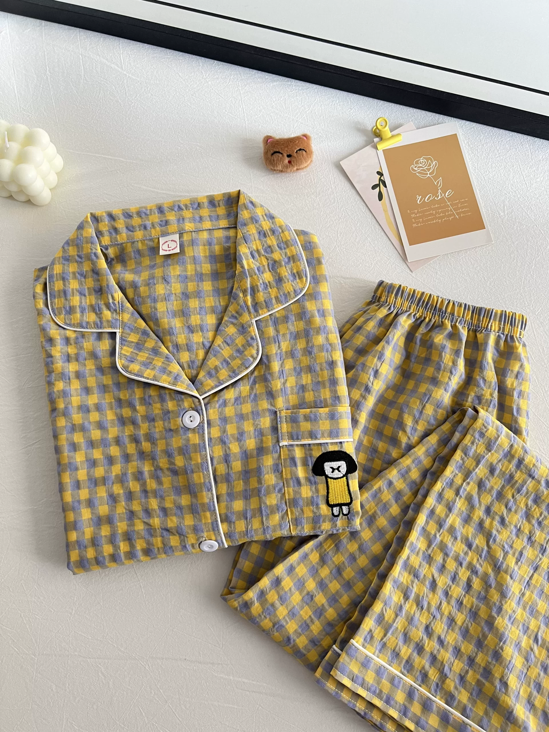 | nameOriginal | Cotton and linen women's 2023 summer Japanese plaid pajamas |