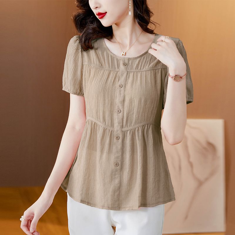 | nameOriginal | Cotton and Linen Women's Short-sleeved T-shirt Summer New Tencel Linen Age-reducing Western Style Small Shirt Elegant Belly Covering Slim Top |