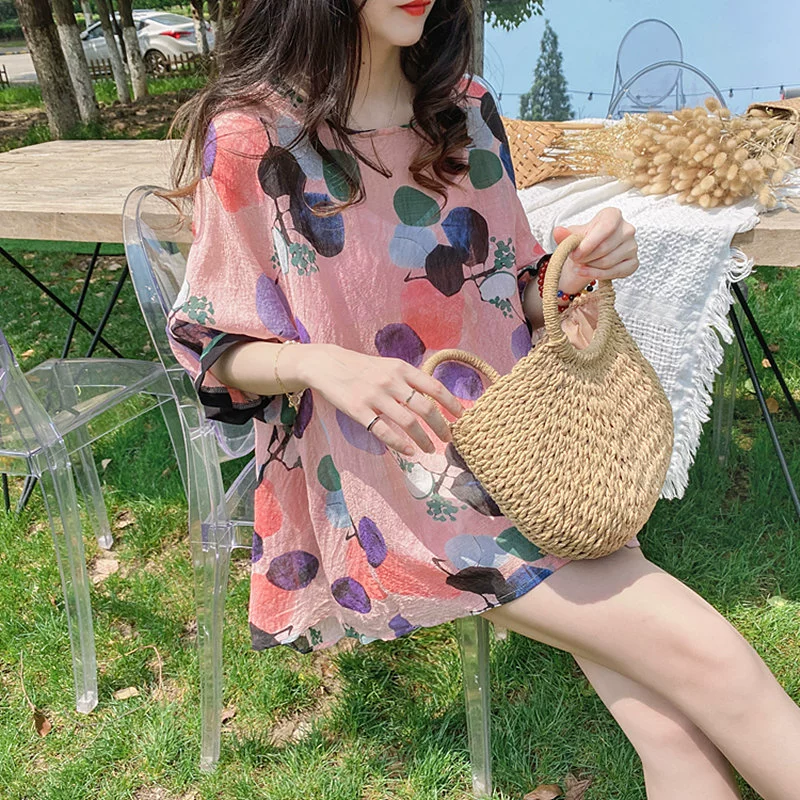 | nameOriginal | Cotton and linen women's summer mid-sleeve pullover loose a-line baby shirt |