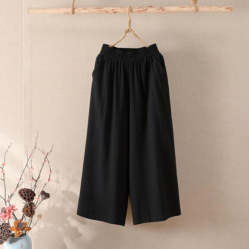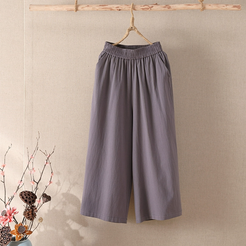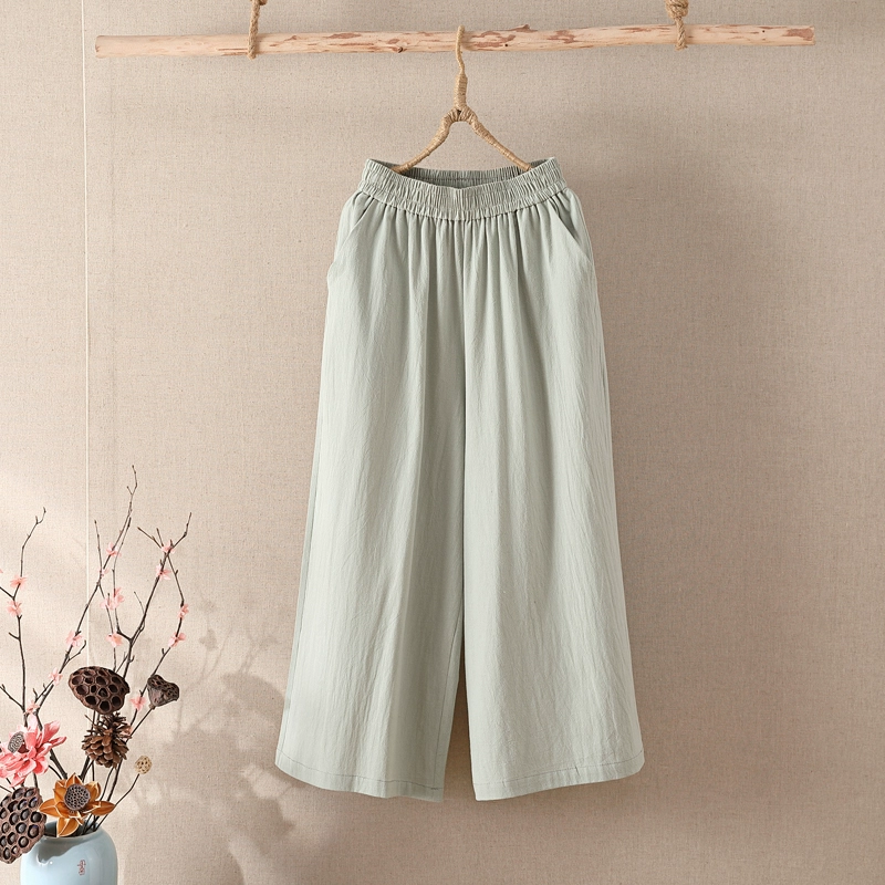 | nameOriginal | Cotton and linen women's summer retro high-waisted wide-leg ninth pants |