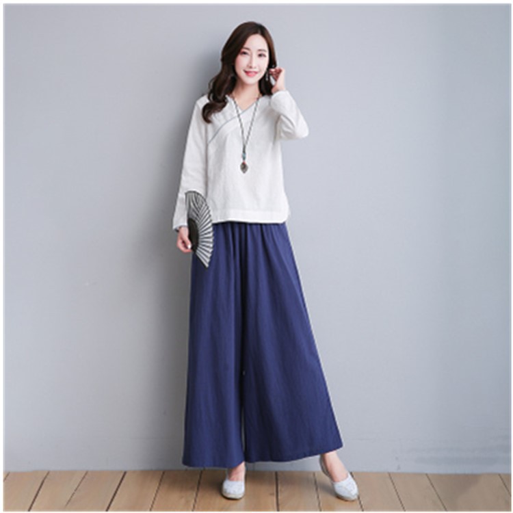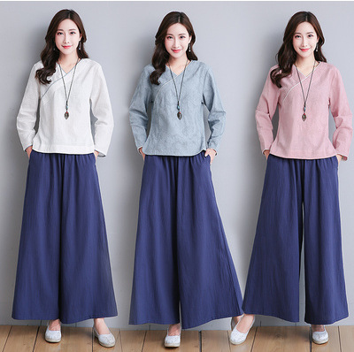 | nameOriginal | Cotton and linen yoga clothes suit women's 2023 Autumn New retro Chinese style hanfu tea man clothes wide leg pants two-piece suit |