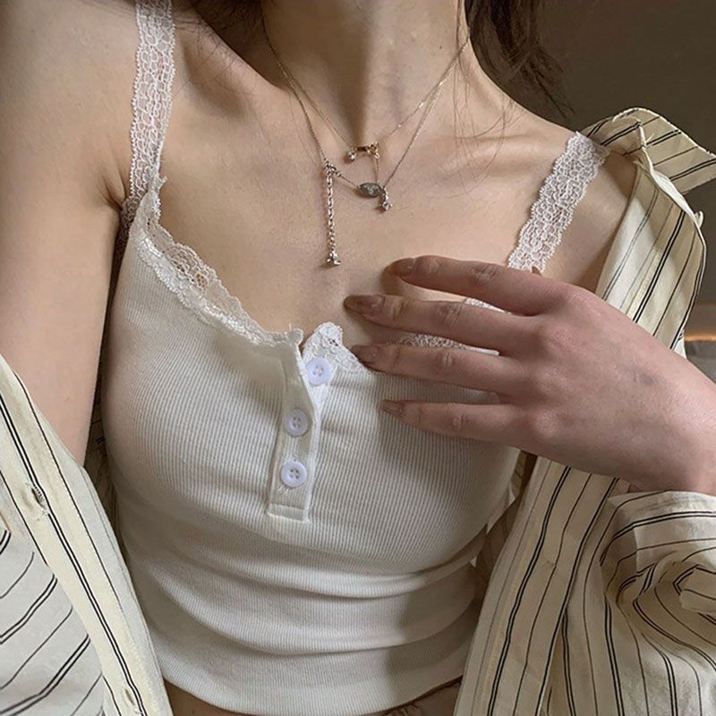| nameOriginal | Cotton Camisole Base Shirt Lace Vest Outer Wear with Chest Pad Free Bra Vest Slimming Tube Top |