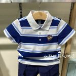 Cotton Children’s Boys and Girls 2024 Summer New Striped Printed Breathable Quick-drying Lapel POLO Short-sleeved Top