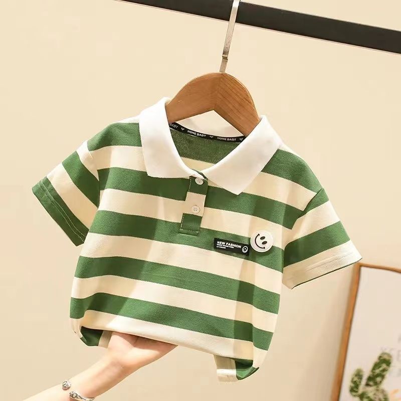 Cotton Children’s Boys and Girls 2024 Summer New Striped Printed Breathable Quick-drying Lapel POLO Short-sleeved Top