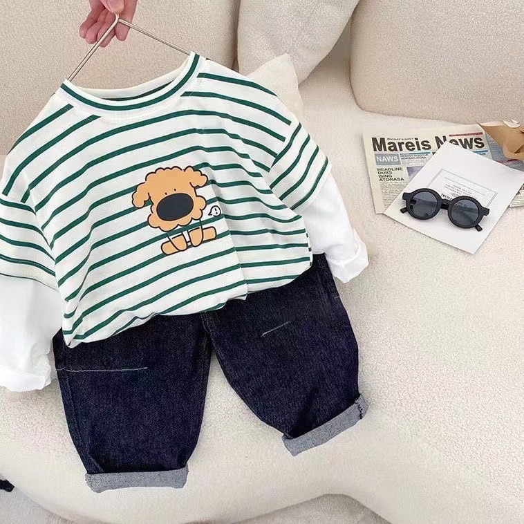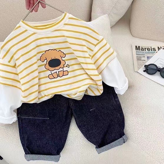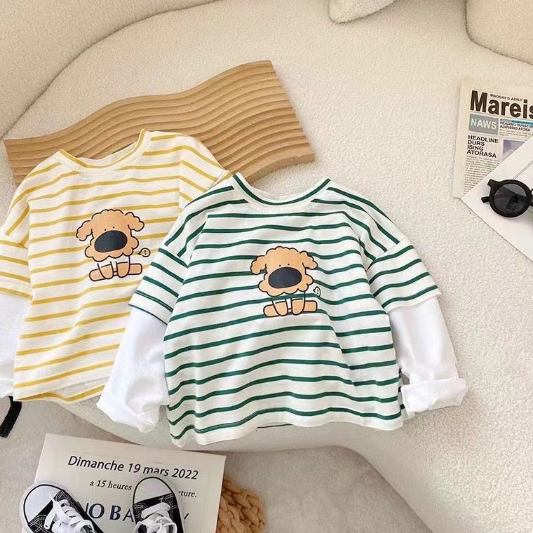 | nameOriginal | Cotton Children's Striped Long-sleeved T-shirt Base Shirt Spring and Autumn Fake Two-piece Cartoon Baby Top for Boys and Girls |