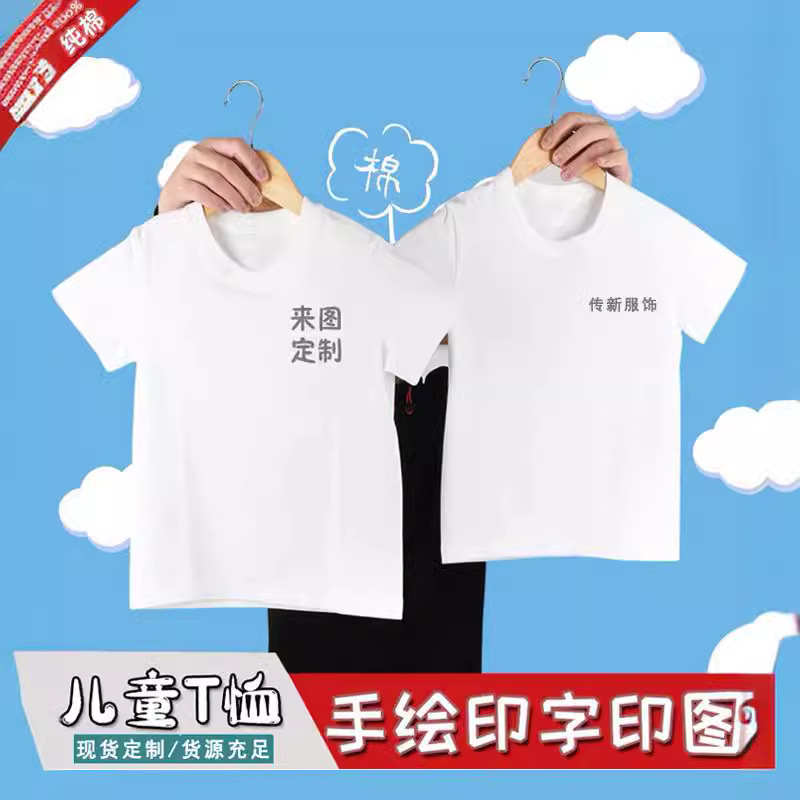 | nameOriginal | Cotton Children's White T-Shirt Blank Short-sleeved Boys and Girls DIY Hand-painted Printing Custom Primary School Culture Advertising Shirt |