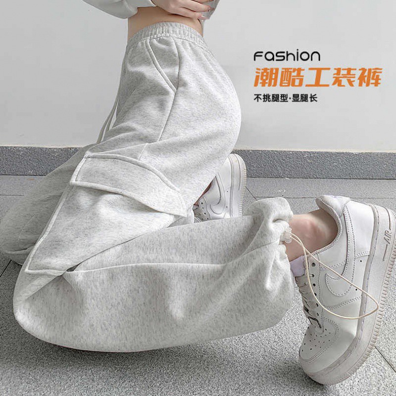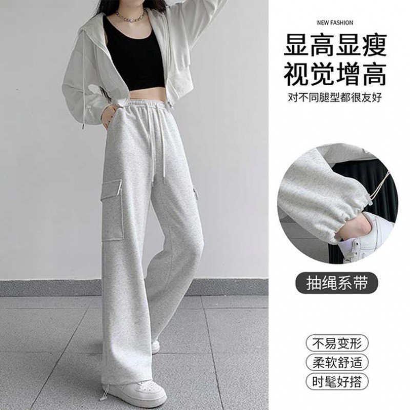 Cotton-Containing American Style Soft Work Pants Women’s Autumn and Winter New Chinese Cotton Heavy-weight Meat-Covering Rope-Drawstring Leg Harlan Sports Pants
