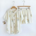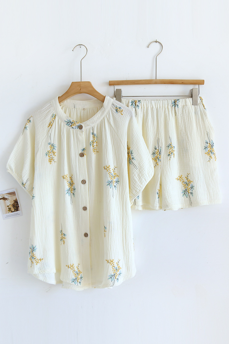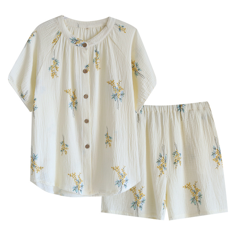 | nameOriginal | Cotton crepe pajamas women's cute simple style home summer Lily short set home wear pajamas |
