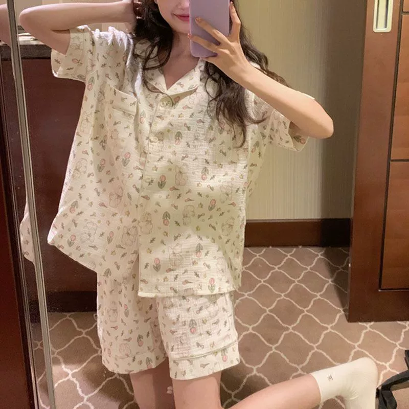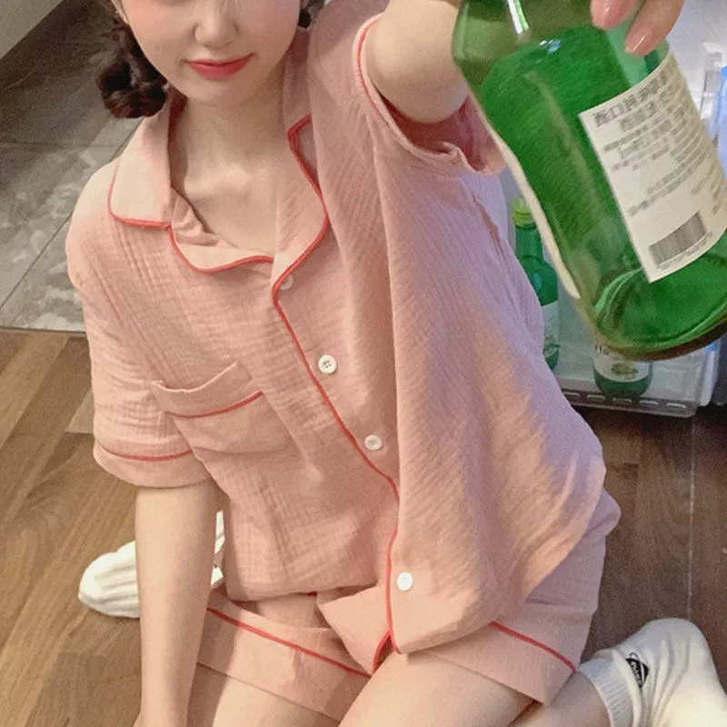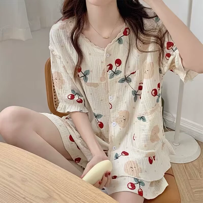| nameOriginal | Cotton gauze women's ins style simple student pajamas with breast pads |