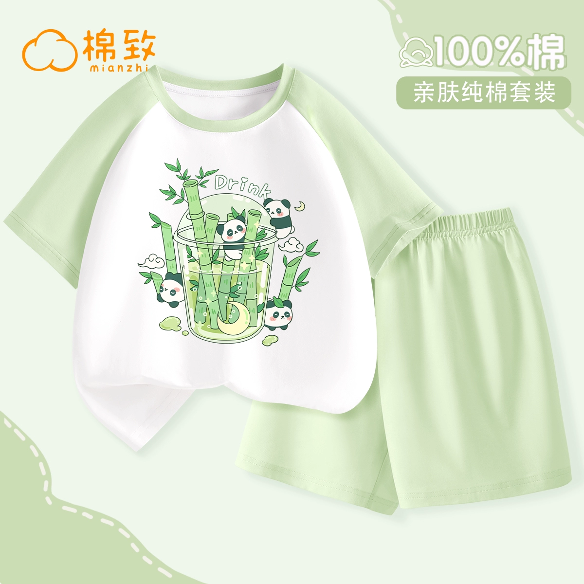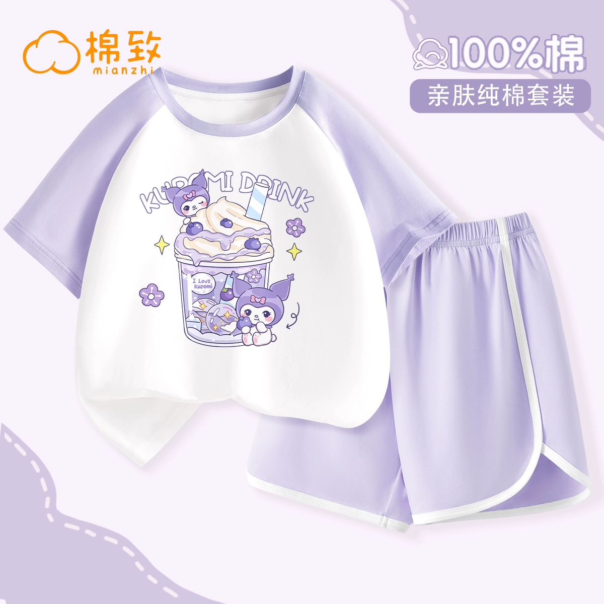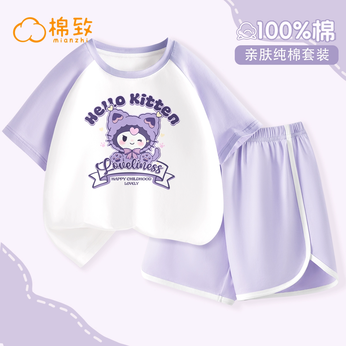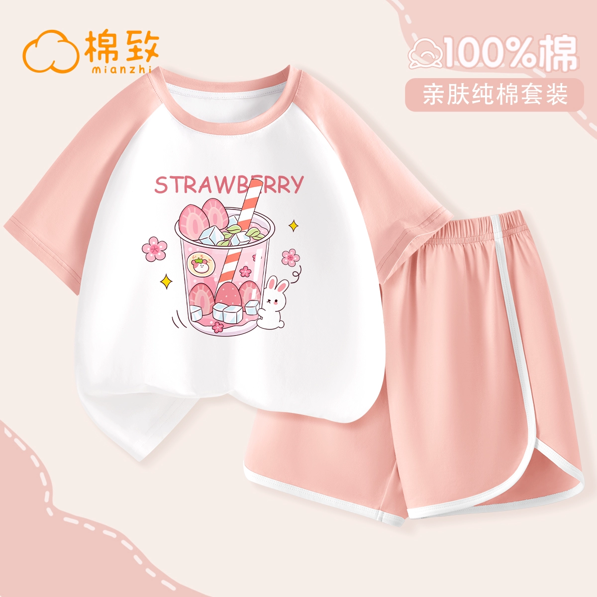 | nameOriginal | Cotton girls' pajamas summer thin pure cotton summer girls short-sleeved girls' summer clothes children's home clothes set |