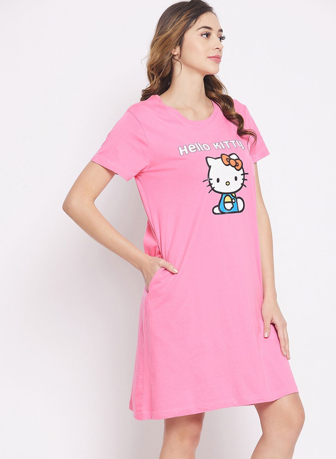 Cotton Hello Kitty Night Dress with Text & Graphic Print.