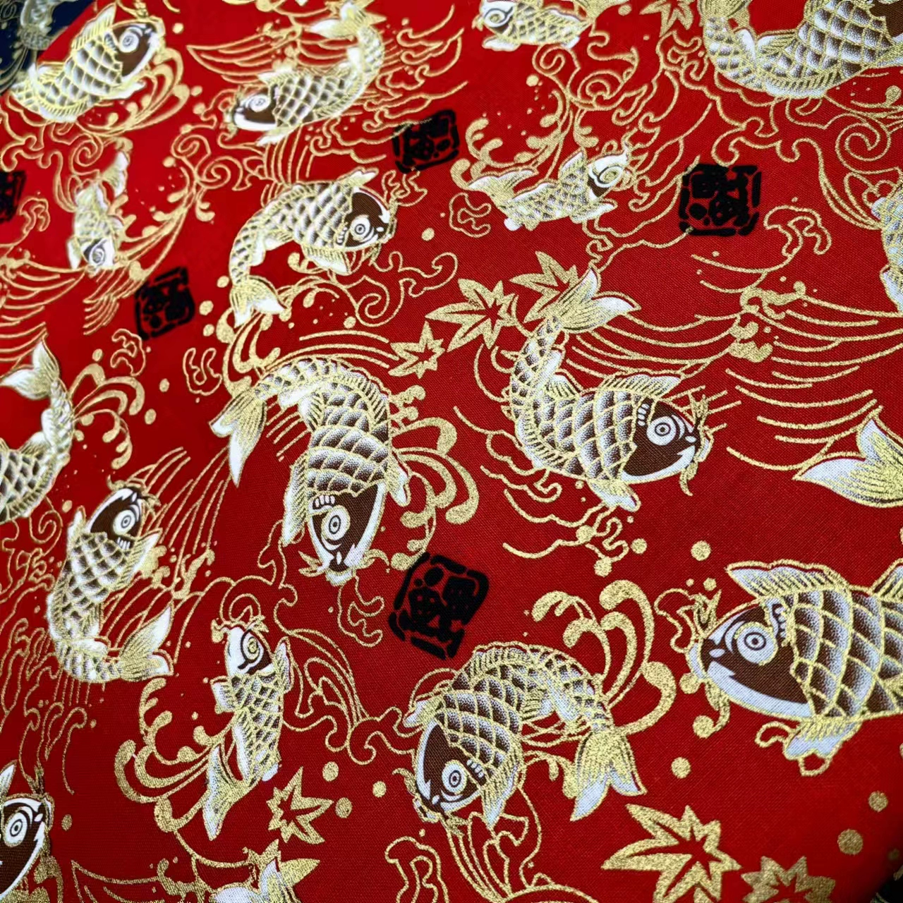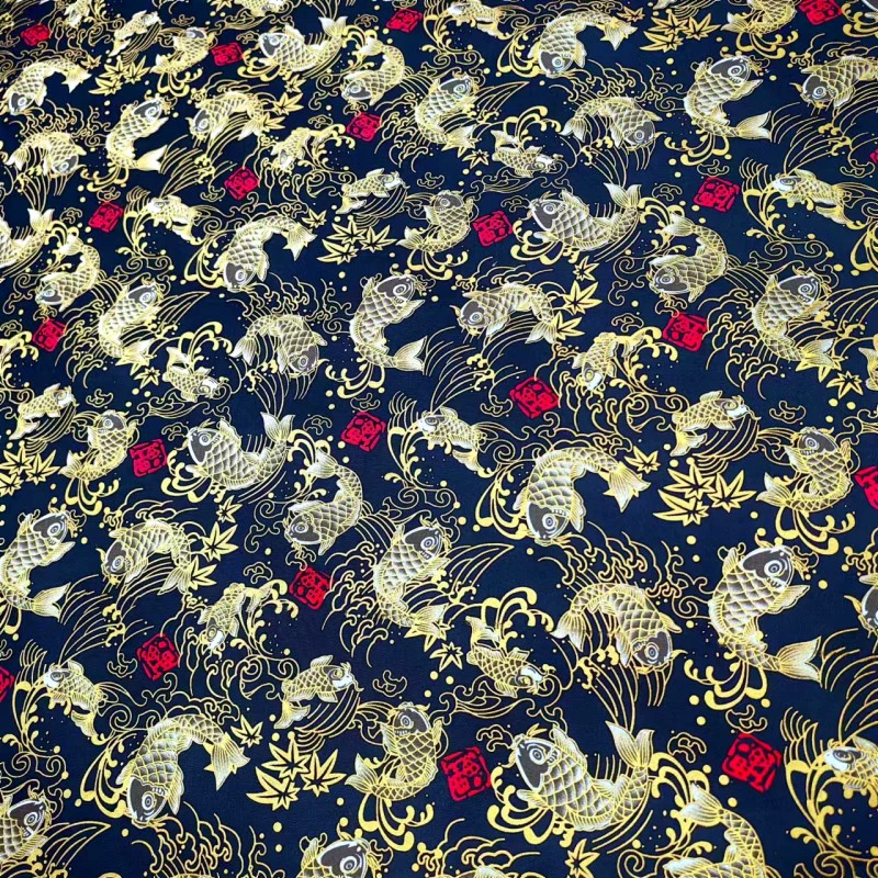 | nameOriginal | Cotton hot stamping printed black lucky koi half meter price suitable for shoes, hats, bags, clothing and other fabrics |