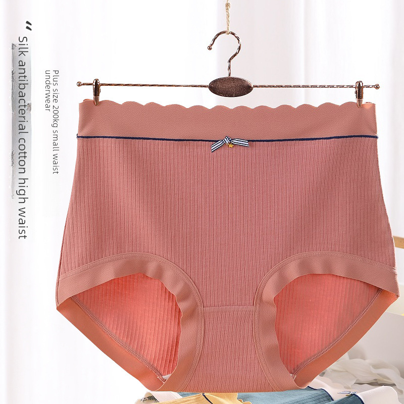 Cotton large size 200kg underwear women’s fat MM mulberry silk antibacterial crotch high waist belly hip ladies underwear Japanese