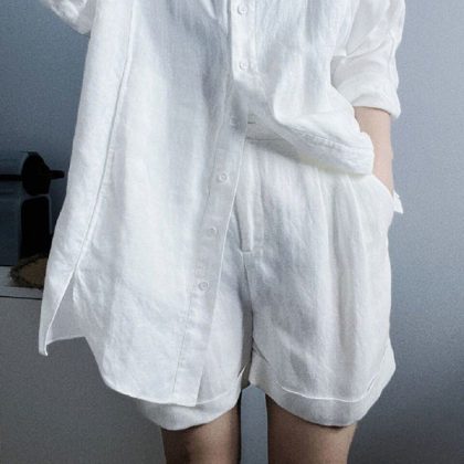| nameOriginal | Cotton Linen 2024 Spring and Summer Light Luxury Fashion Simple Commuting Sunscreen Shirt Fresh Shirt Shorts suit Women |