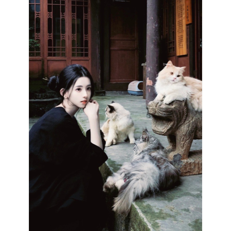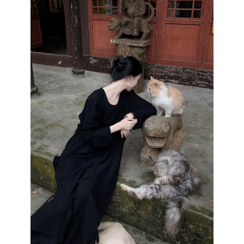 [Cotton, Linen, Pine Smoke] Black New Chinese Round Neck Buckle suit Hanfu Zen Chinese Style Tea Art Tea Clothing