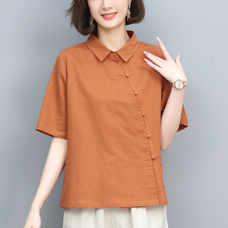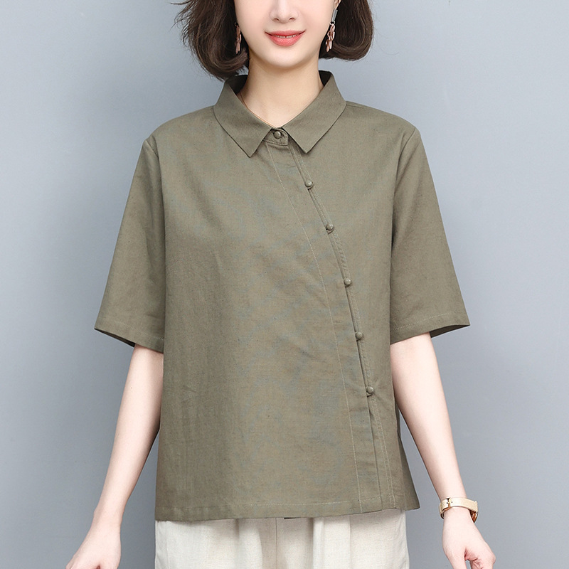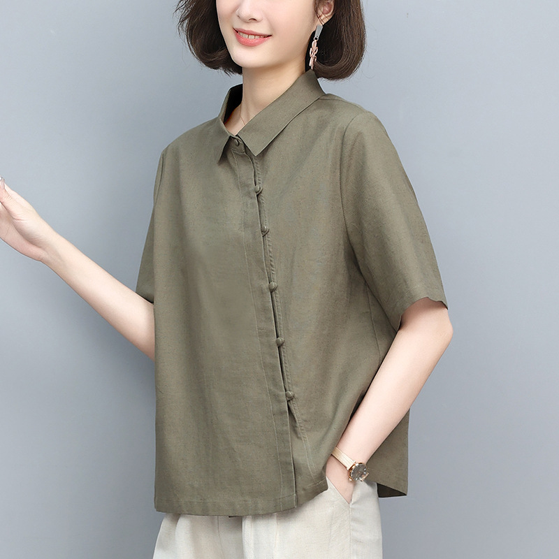 | nameOriginal | Cotton Linen Shirt Women's 2024 New Summer Lapel Short-sleeved Shirt for Mother Middle-aged and Elderly Loose Slimming Half-sleeved Top |