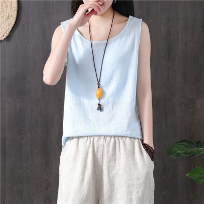 | nameOriginal | Cotton Linen Vest Women's Summer Short All-match Loose Outer Wear Vest Ethnic Style Casual Cotton Linen Sleeveless Top Small Shirt |