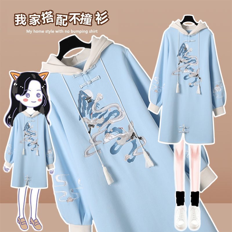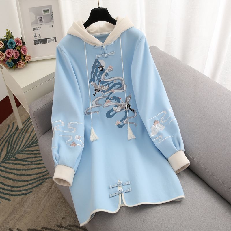 | nameOriginal | Cotton material cloud fairyland original design Han element embroidery national style sweater skirt new Chinese style velvet padded hooded skirt |