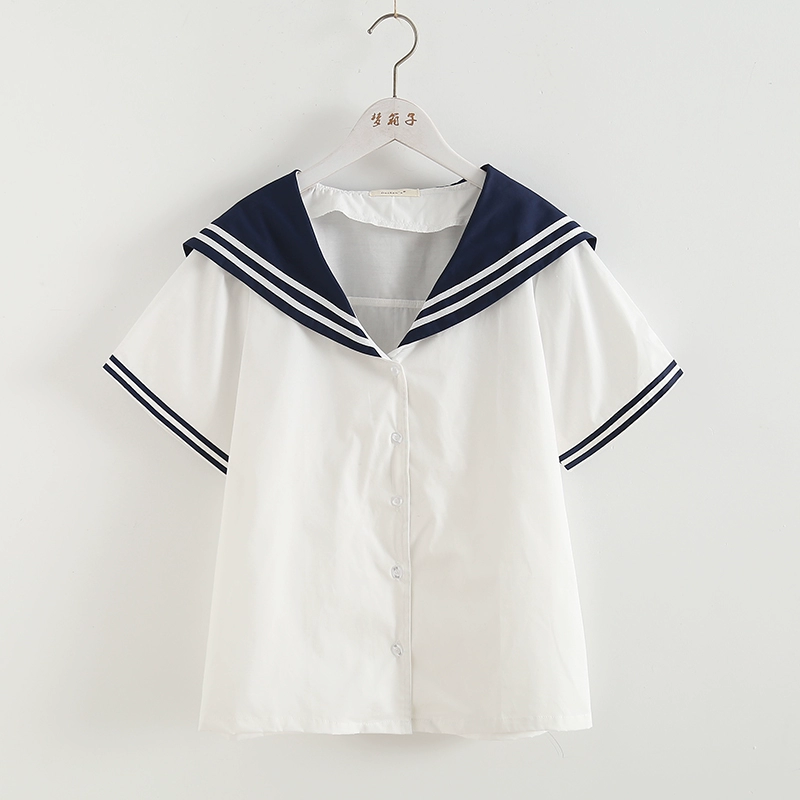 | nameOriginal | Cotton navy collar short-sleeved single-breasted loose shirt |