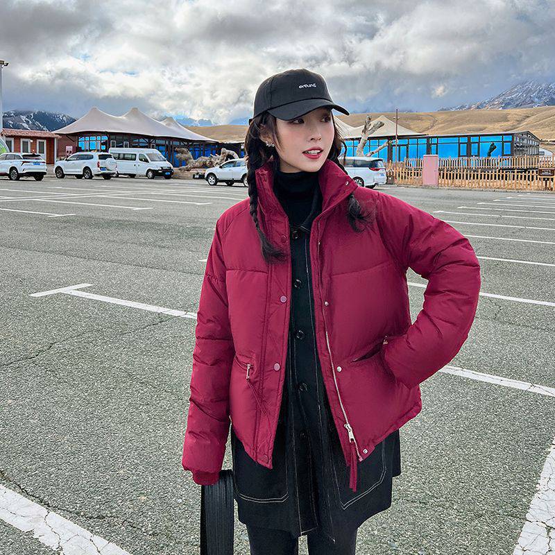 | nameOriginal | Cotton-padded jacket women's autumn and winter short 2023 new thickened purplish red down cotton-padded coat college style stand collar bread coat |