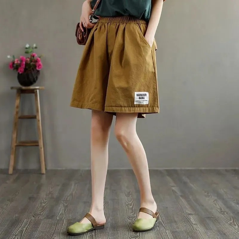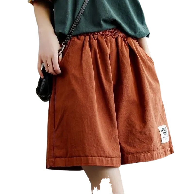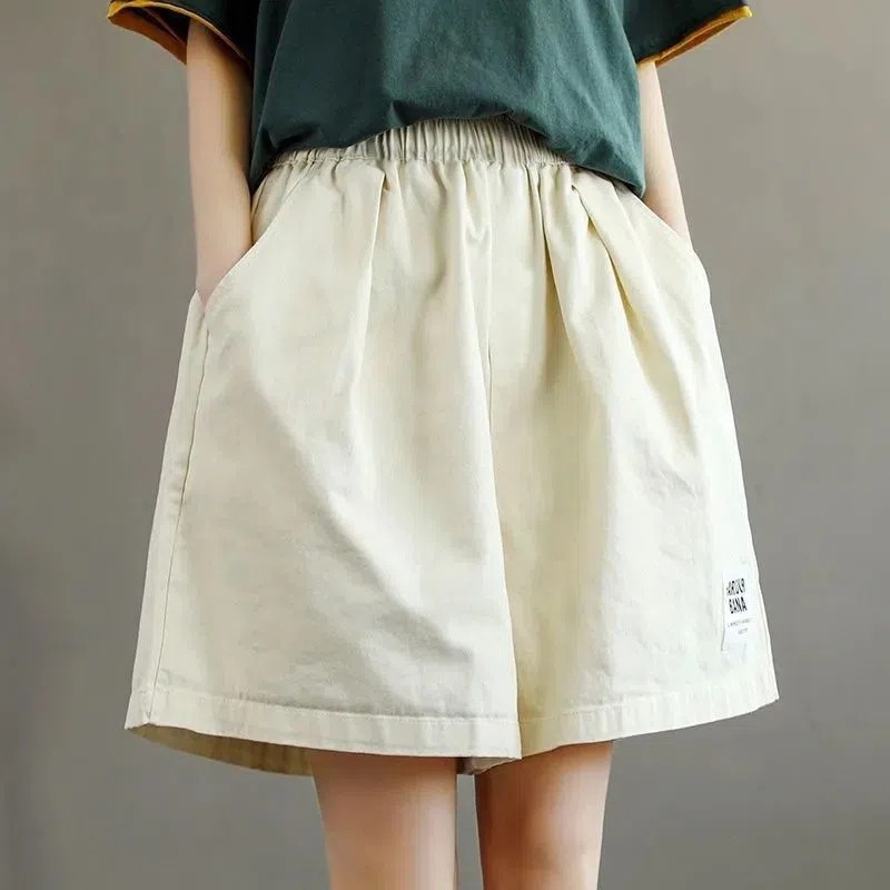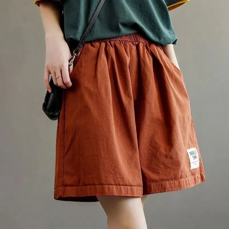 Cotton plus size Shorts Women’s 2024 Summer Wide Leg High Waist Loose Slimming Women’s Middle-aged Mother’s Five-point Short Pants