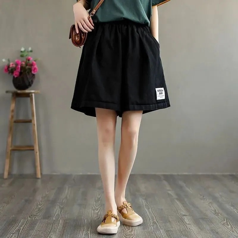 Cotton plus size Shorts Women's 2024 Summer Wide Leg High Waist Loose Slimming Women's Middle-aged Mother's Five-point Short Pants
